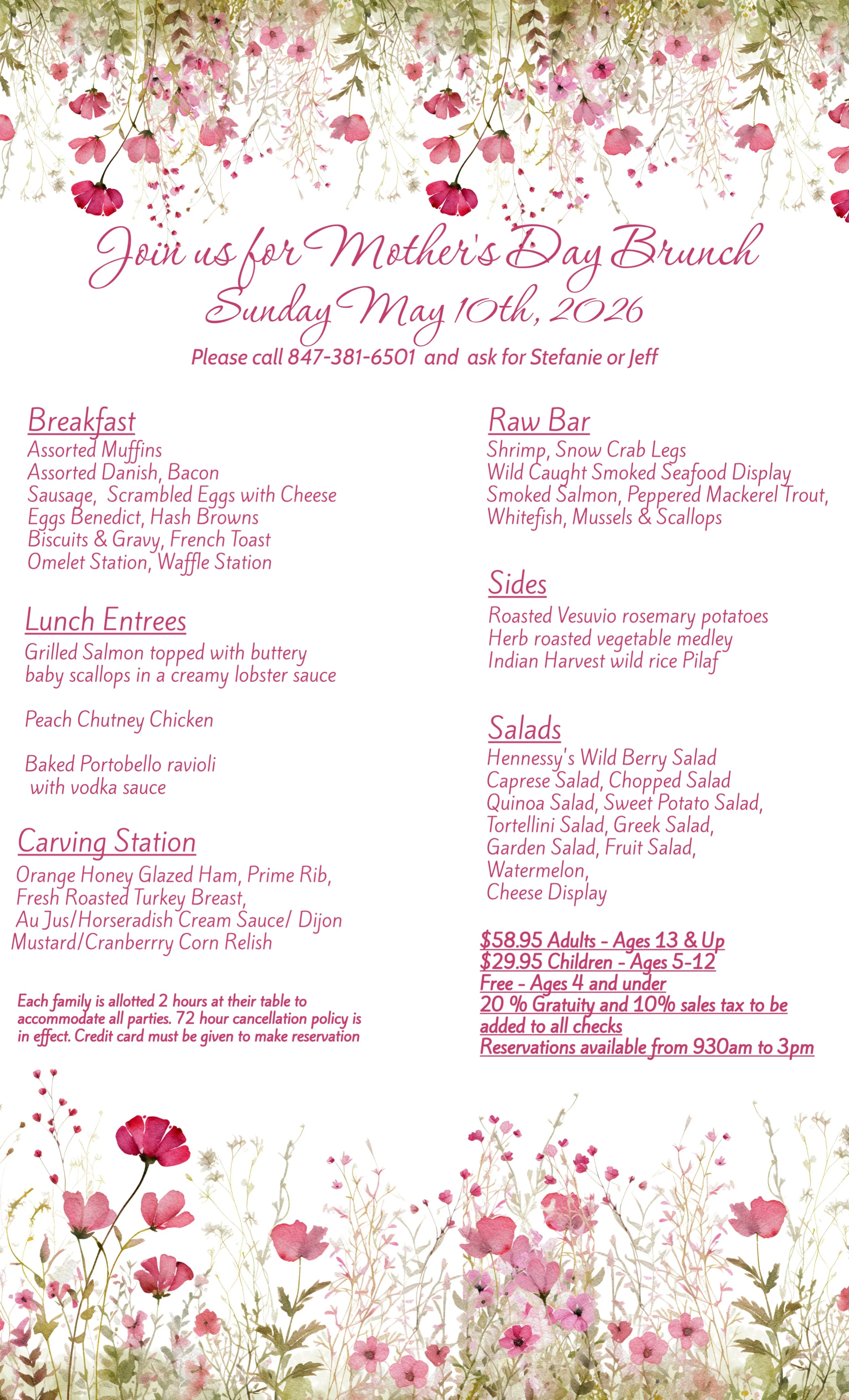 Reservations only. Call 847-381-6501 today